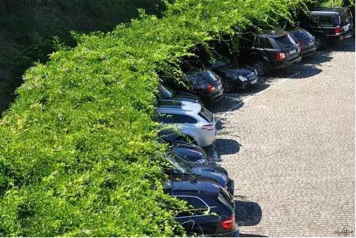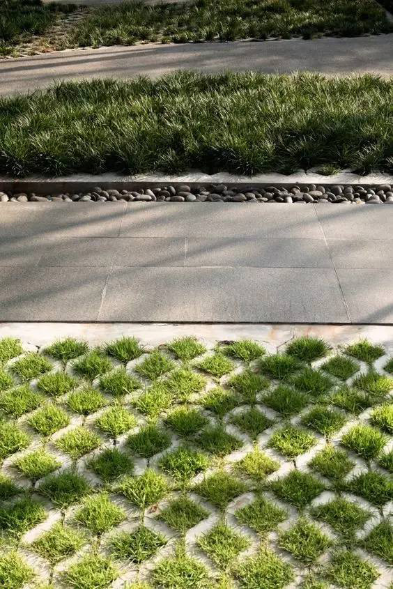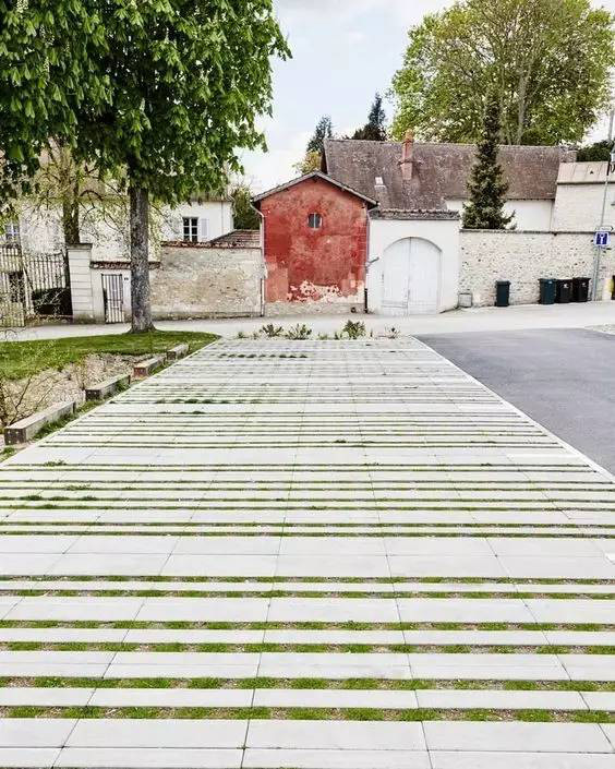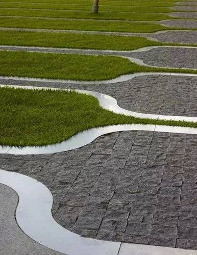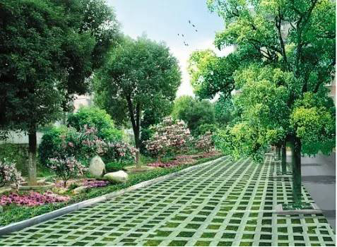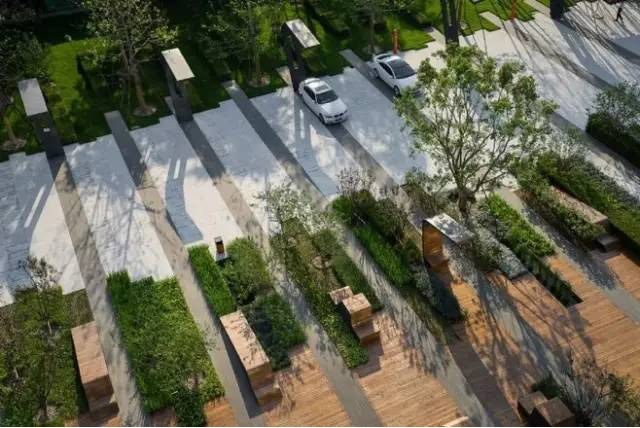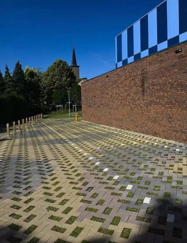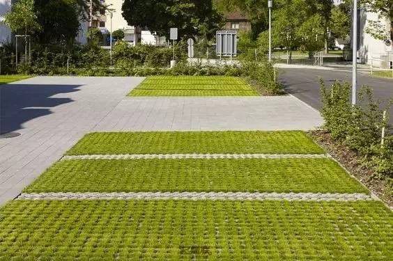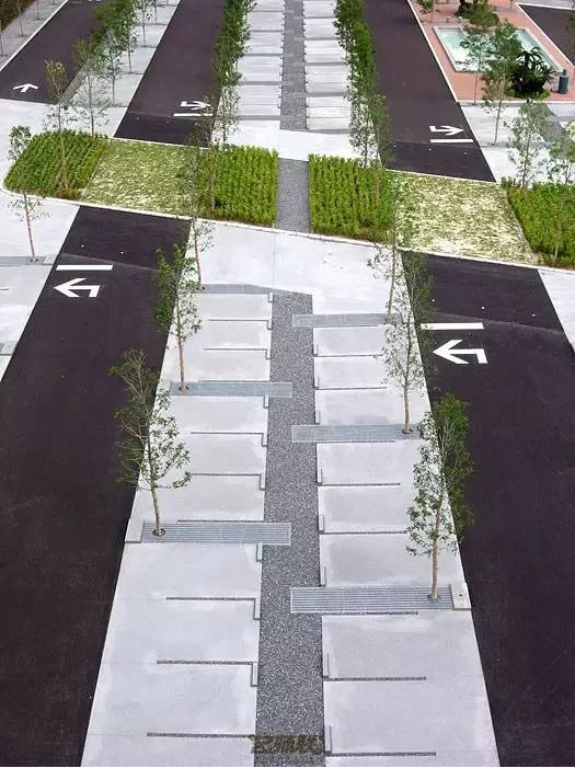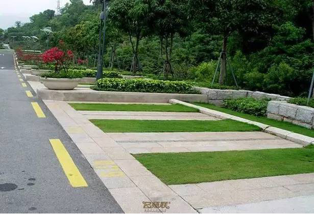 利于更換及修補(bǔ)的防滑鋪裝材料,以及它的透水性,加上鋪設(shè)尺寸符合人體工程學(xué),真是人性、環(huán)保、安全而美觀。而停車場(chǎng)周圍的綠植,起到降溫作用,視覺上也美化了場(chǎng)景,愉悅內(nèi)心,安全出行,再好不過。