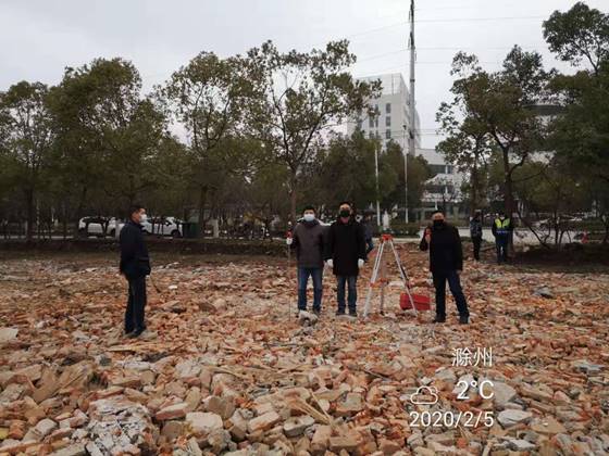 2月3日,我院再次接到市重點工程管理處的緊急任務(wù),由我院測量隊承擔(dān)市新型冠狀病毒肺炎定點收治備用醫(yī)院三期場地的地形圖及土方測繪工作。疫情就是命令,測量隊隊員們聞令而動,紛紛請戰(zhàn)。由副隊長蔣蔚、主任工程師梁發(fā)軍帶領(lǐng)5名隊員,帶著測繪工具,不顧場地泥濘,于2月4日上午八點半準(zhǔn)時到達現(xiàn)場,立即開展工作,并于當(dāng)日完成了測量數(shù)據(jù)采集、傳輸、整理和制圖工作,為備用醫(yī)院三期建設(shè)提供了詳實的第一手基礎(chǔ)資料。