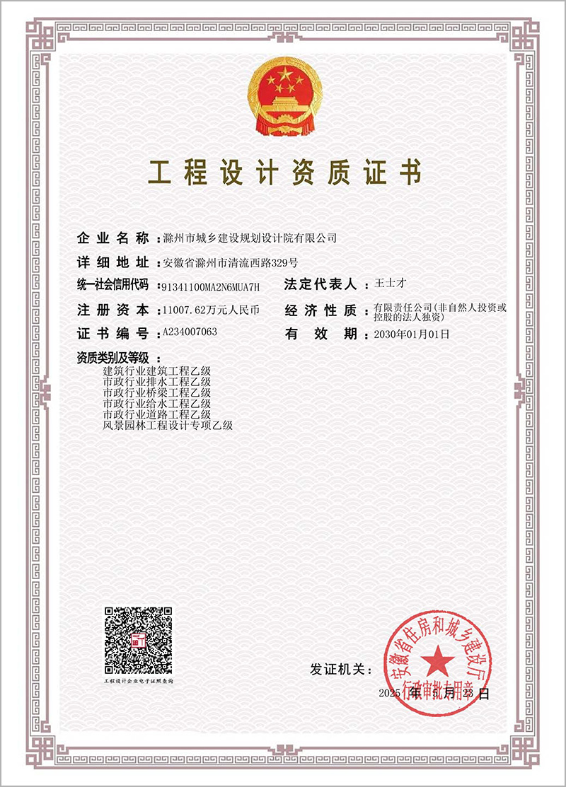 工程設(shè)計(jì)資質(zhì)證書(建筑、給水、排水道路、橋梁、風(fēng)景園林)