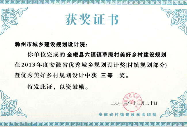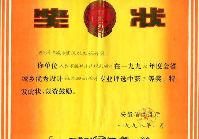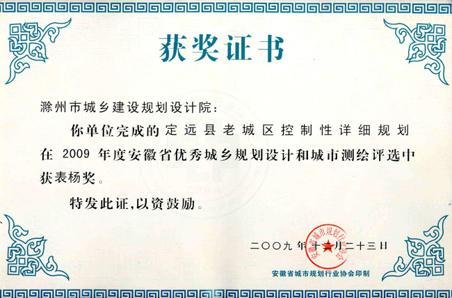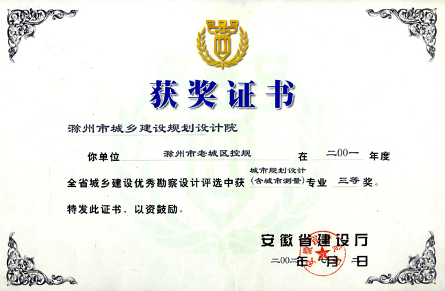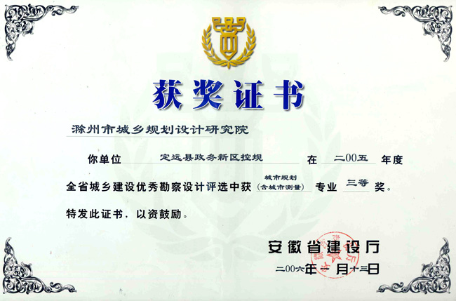 滁州市經(jīng)開區(qū)地形圖測繪規(guī)劃獲獎(jiǎng)證書