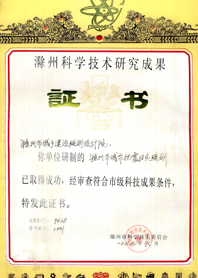 滁州市抗震防災(zāi)規(guī)劃(市級科技成果)